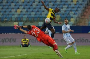 २२ औं मिनेटमा अर्जेन्टिनाको अघि बढ्ने प्रयासमा पोस्ट बाधक बन्यो । इक्वेडरका ग्रुएजोले दिएको खराब ब्याकपासलाई कप्तान लिओनेल मेस्सीले नियन्त्रणमा लिँदै वन भर्सेस वनमा गरेको प्रहार पोस्टमा लागेर फर्किएको थियो ।
